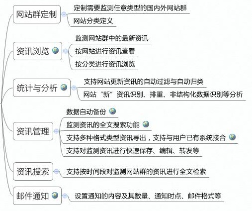 不同的类型和行业的客户,其个性化监测的网站大都不同。一般而言,其监测的定向网站有: