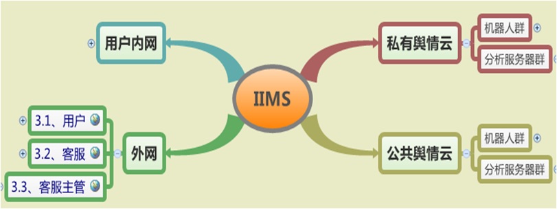 1、外网:用户可以在外网(互联网)上进行监测目标的定制、监测资讯的浏览与管理等操作。在外网,客服人员/客服主管可以为其用户提供定制、资讯标识处理等辅助服务;